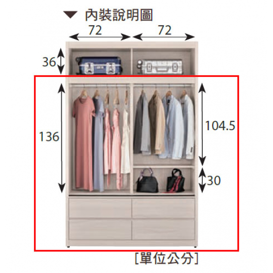 A1213-2 艾維斯5尺四抽拉門衣櫥 木門$24200