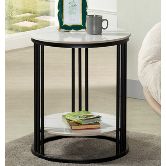 297-2 衛平1.65尺雙岩板圓几 10mm亮面岩板+黑鐵砂防鏽烤漆處理腳架 (岩板特性:高強度.耐磨耐刮.耐高溫.易清潔)$2000