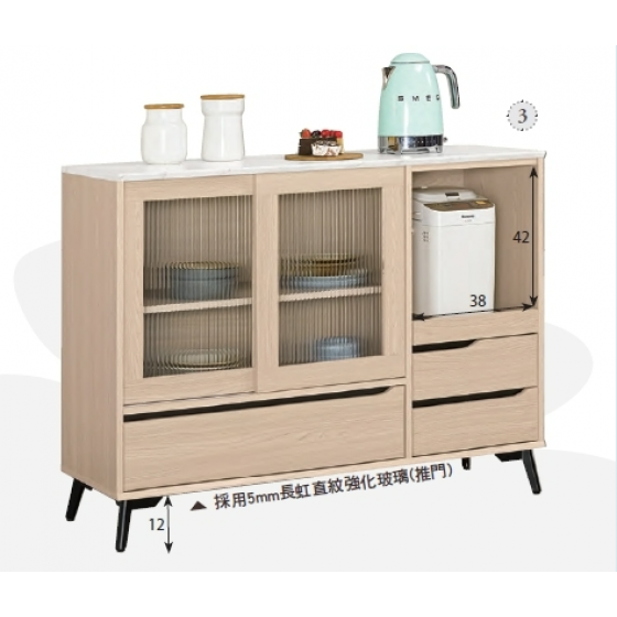 A1704-3 朵利斯4尺仿石面推門收納櫃下座 附活動隔板1片$9400