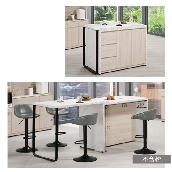 A1709-1 里斯特4尺仿石面中島型多功能餐桌櫃 附活動隔板1片$18300