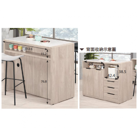A1715-1 韋斯里4尺中島型岩板吧台桌 厚12mm岩板桌面(附活動隔板2片)$12100