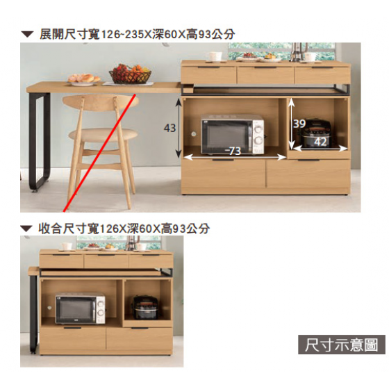 A1721-4 塔利斯4尺中島型多功能餐桌櫃$17600