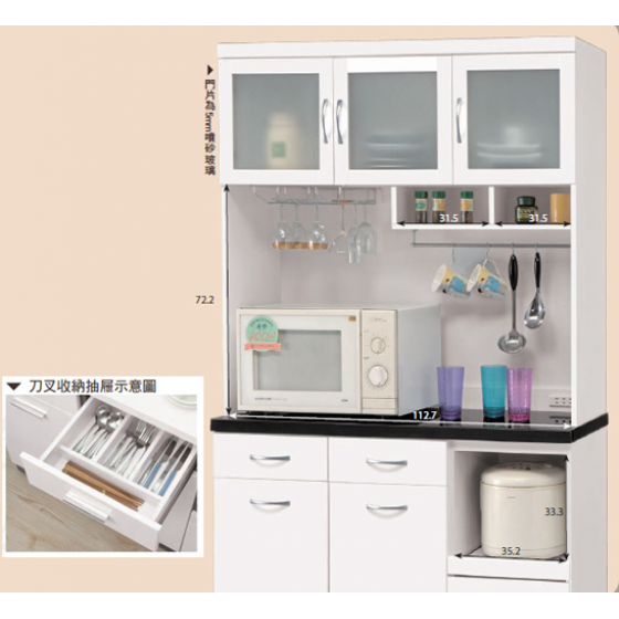 A1732-1 雅典娜4尺石面收納櫃 (附活動隔板1片) (附刀叉收納抽屜)$18000