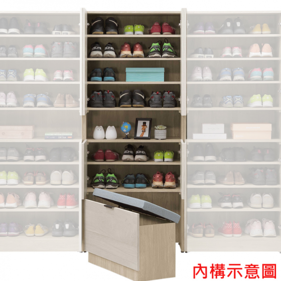 370-3 庫克2.5尺穿鞋椅鞋櫃 (附4片活動隔板.1個收納型穿鞋椅) (穿鞋椅墊為貓抓皮材質.無透氣孔)$10400
