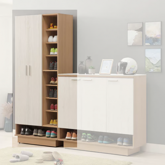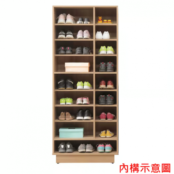374-2 喬圓3*7尺高鞋櫃 (附6大6小活動隔板.整台F3低甲醇防蛀木心板製成) (左上附1個通氣網.鞋長可容納至37.5cm)$9100