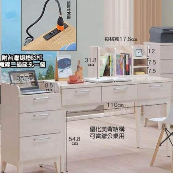 E811-2 漾白楓4尺三抽辦公書桌 (不含書上架)$6000 E811-4 漾白楓功能櫃 3.3尺 4尺共用$1300