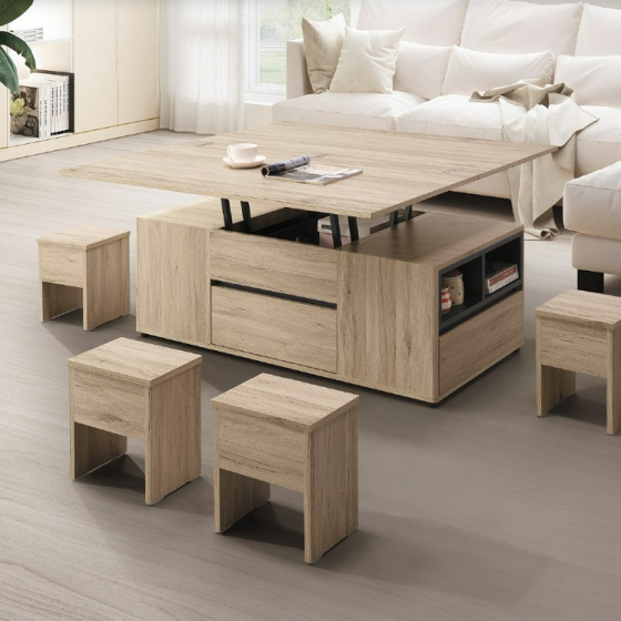 B301-01 史蒂芬4尺雙升降茶几(附*4椅凳.可全收進茶几內)(橡木)$13200