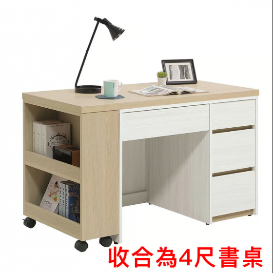 404-4 洛蒂4~4.66尺伸縮書桌全組 (桌面可左右擺放.不分左右方向) (附4顆可移動煞車輪.恕不拆賣) (桌面尺寸:寬120x深60) (單書桌尺寸:寬97x深60x高71.5cm) (不可L型擺放)$7400