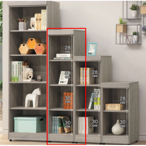 E817-6 階梯式1.3尺書櫃 4格 灰梧桐$1900