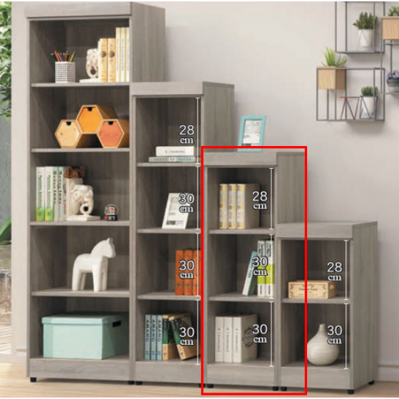 E817-10 階梯式1.3尺書櫃 3格 灰梧桐$1600