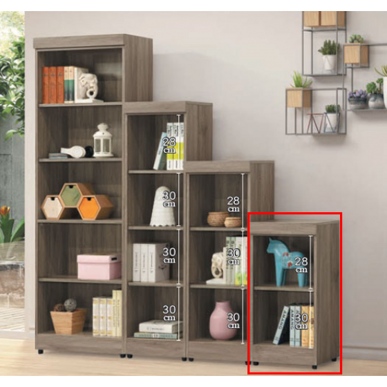 E817-13 階梯式1.3尺書櫃 2格 古橡$1300