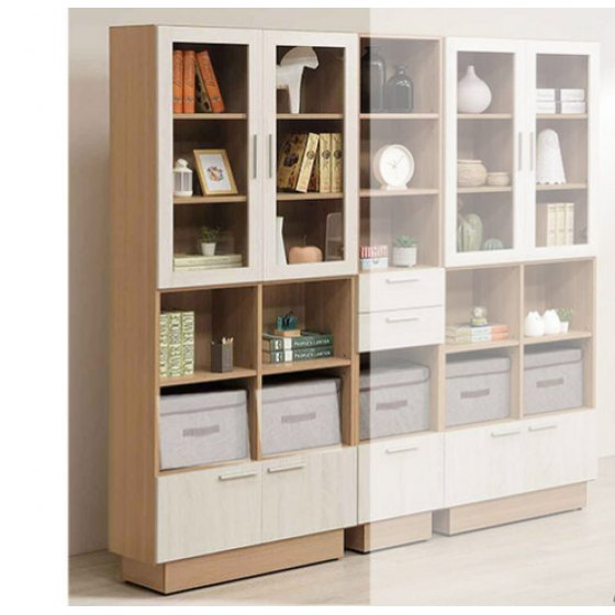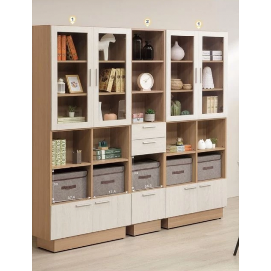 435-2 喬圓2.7*7尺四門書櫃 (附6片活動隔板.文件盒為道具無販售) (整座低甲醇防蛀木心板製成)$9000