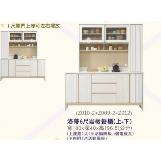 508-3 洛蒂6尺岩板餐櫃 上+下 (上座附2大2小活動隔板,1個電線孔,下座附2片活動隔板)$23900