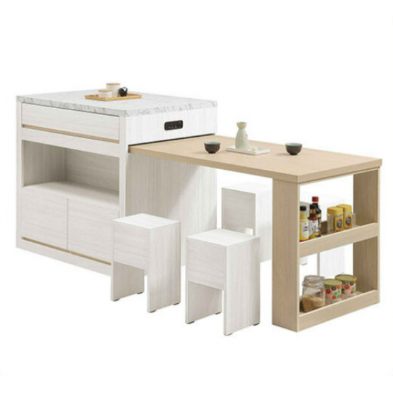 511-2 洛蒂伸縮中島餐桌櫃 附椅凳*4 ⊙中島桌(含4張輔助椅)+L型桌面架、$17800