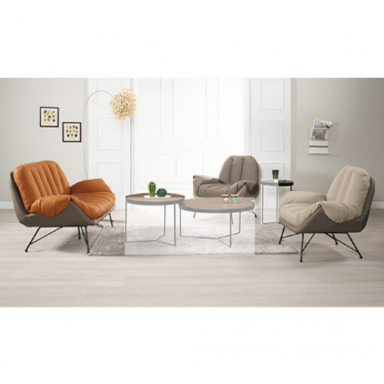 A1352-1 伊美達沙發組 全組$25200 A1352-2 伊美達單人椅 米色皮 坐高45公分$7100 A1352-3 伊美達單人椅 灰色皮 坐高45公分$7100 A1352-4 伊美達雙人椅 橘色皮$10800