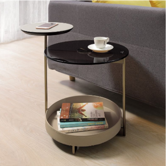 B333-06 艾德蒙馬鞍皮玻璃小茶几$5900