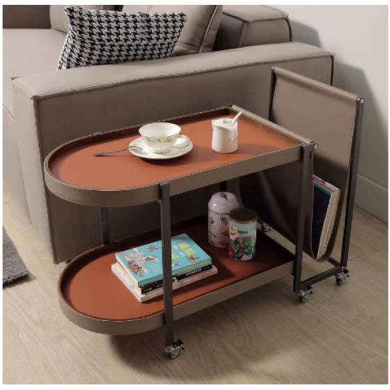 B333-10 巴斯特雙層馬鞍皮推車茶几$8400