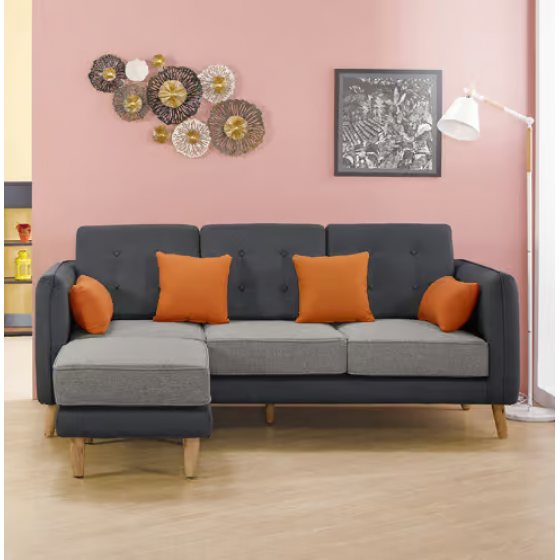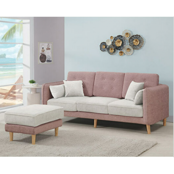231-2奧勒岡L型粉色貓抓布沙發(全組坐寬174量至背枕處坐深57坐高43公分附4個小抱枕三人座+非收納型腳椅.恕不拆賣)$15600 231-3 奧勒岡L型灰色貓抓布沙發 全組$15600