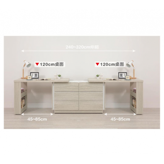 B554-03 萊米克8尺雙人書桌組240~320公分伸縮$17600