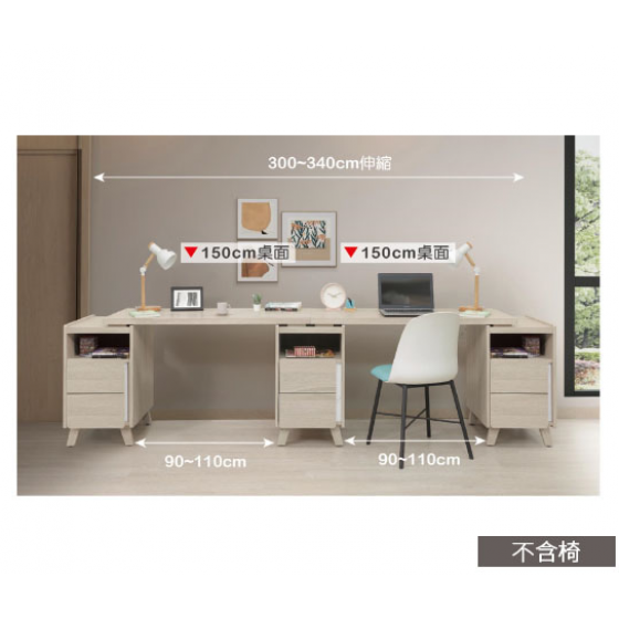 B554-04 萊米克10尺雙人書桌組300~340公分伸縮$20800