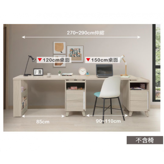 B554-05 萊米克9尺雙人書桌組270~290公分伸縮$16700