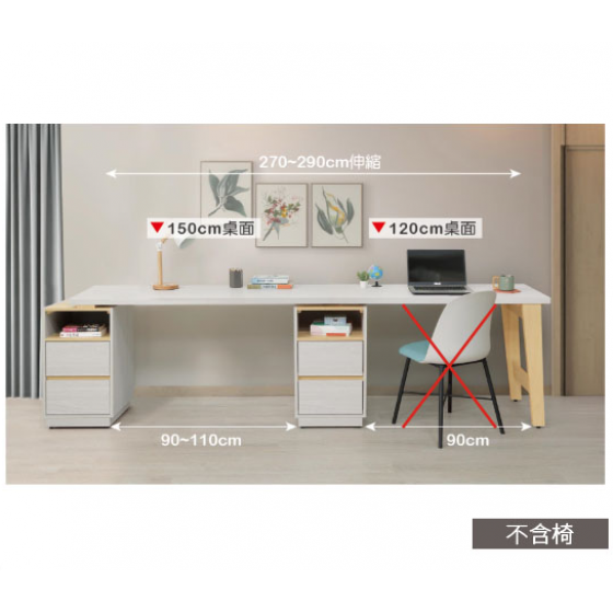 B557-03 泰勒9尺雙人書桌組270~290公分伸縮$15300