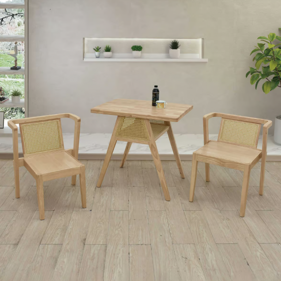 566-3 和風仿藤編實木桌椅組 全組 (1桌2椅恕不拆賣) (椅(小):坐寬38坐深41.5坐高38cm) (椅(大):坐寬47坐深42坐高45.5cm)$11700