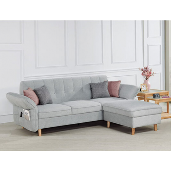 233-2艾麗莎L型貓抓布沙發(全組椅身兩側附有收納袋附4個小抱枕坐寬173坐深59坐高43公分.三人座+收納型腳椅.恕不拆賣)$19500