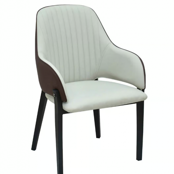 590-5 卡摩西皮餐椅(坐寬43坐深46坐高45cm) 材質: 高密度泡棉+高級進口皮革+黑鐵砂烤漆防鏽處理腳$3900