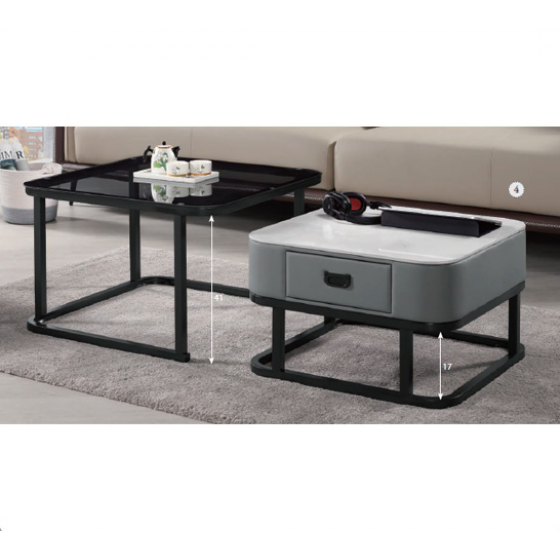 A1424-5 貝娜組合茶几 全組 大桌面4mm強化玻璃小桌面9mm岩板$3600