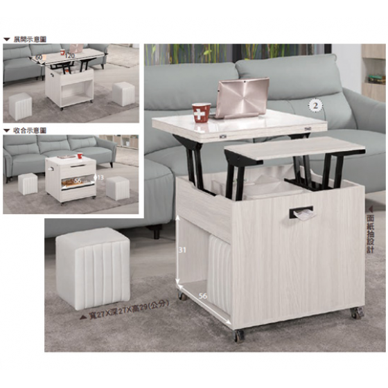 A1426-2 丹尼斯2尺岩板多功能大茶几 ⊙附輔助椅2張、 ⊙油壓升降五金$10800