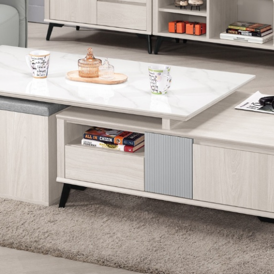 A1431-1 喬倫斯4.3尺岩板伸縮大茶几 桌面12mm岩板雙邊抽屜,雙邊開門附輔助椅*2$13000