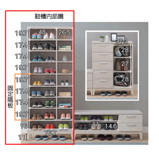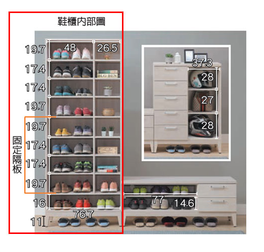E931-1 漾白楓3*7尺高鞋櫃$7500