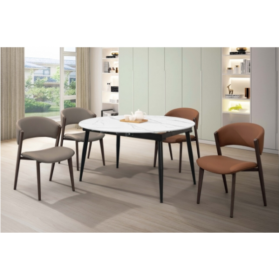 B533-04亞特4.5尺岩板伸縮圓餐桌$11000 B506-02亞特餐椅(淺灰)$3300 B506-03亞特餐椅(土黃)$3300