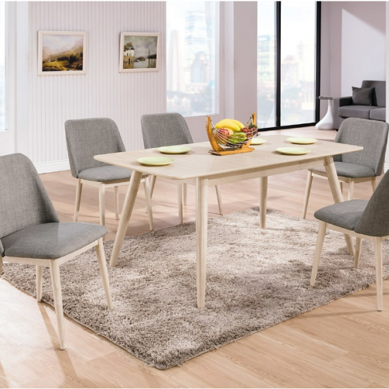 B516-01帕特洗白5.3尺拉合餐桌(洗白)$9500 B516-02帕特洗白灰色布餐椅(布)$3200 B515-06帕特洗白淺咖啡皮餐椅(皮)$3200 B528-01 帕特淺胡桃5.3尺拉合餐桌(胡)$8000