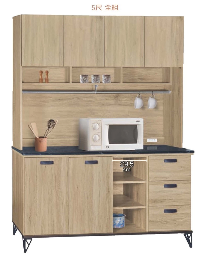 F294-1 新橡木5尺收納櫃 黑白根石面 全組上+下$13500 F294-3 新橡木4尺收納櫃 黑白根石面 全組上+下$10500