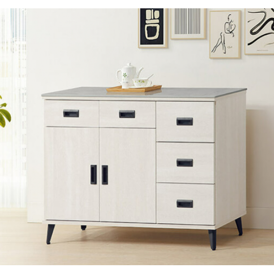 F291-2 朵拉鋼刷白5.3尺餐櫃下座 岩板12mm$8100 F291-4 朵拉鋼刷白4尺餐櫃 下座 岩板12mm$6400
