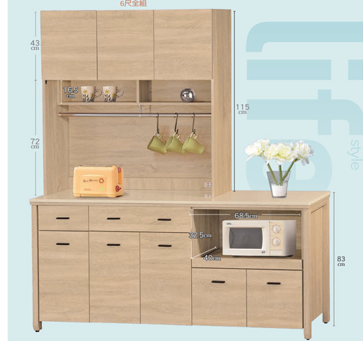 餐櫃+碗碟櫃+電器櫃+餐桌櫃