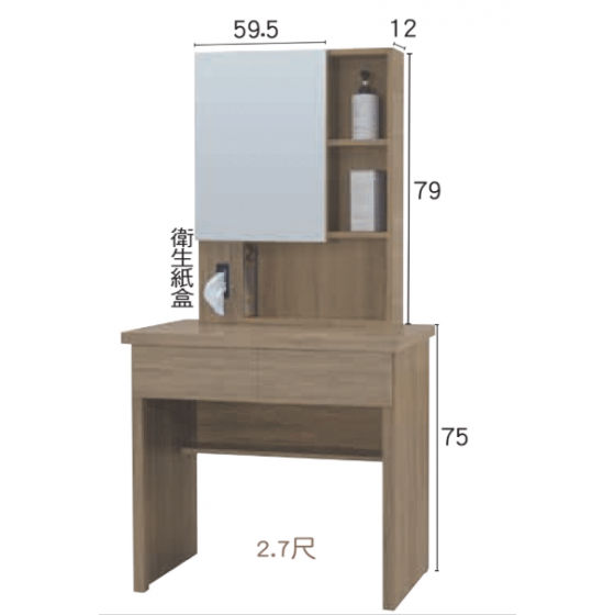 F521-6 白梧桐2.7尺二抽鏡台$2800 F521-8梧桐2.7尺二抽鏡台$2800 F521-10 灰橡2.7尺二抽鏡台$2800 F521-12 雪松2.7尺二抽鏡台$2800