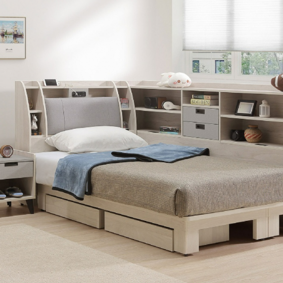 035-2 拉蒂亞3.5尺床頭箱(下緣高度59公分.可收納)$5800 035-3 拉蒂亞3.5尺床底(含2抽屜)$6500 035-4 拉蒂亞7尺床邊櫃(下擺可置物)$6900