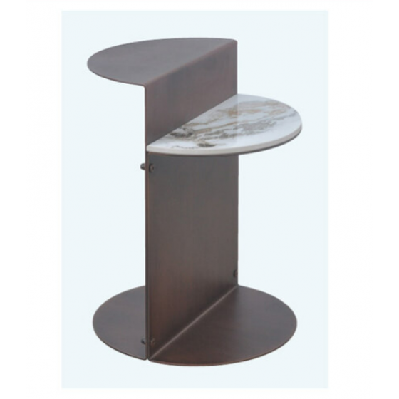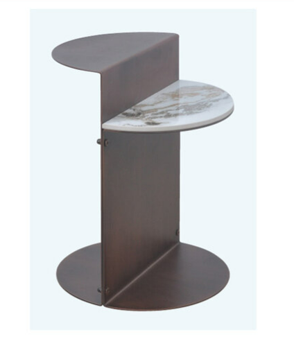 G601-2 K18造型圓几 岩板 鐵腳髮絲紋$4000