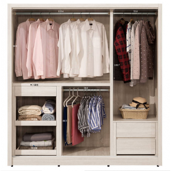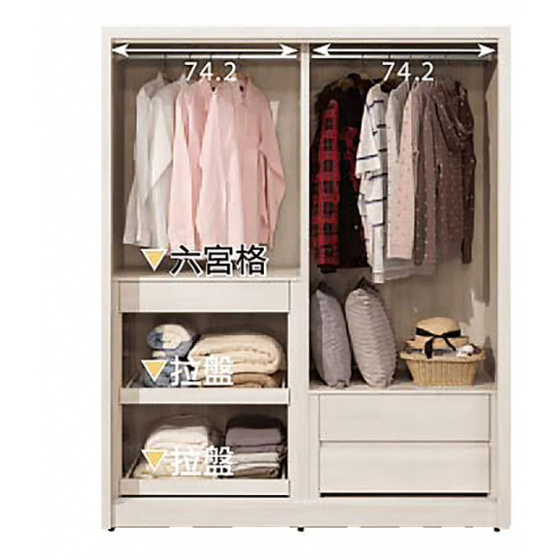 089-5 海芋6尺推門衣櫃(門片全為F3低甲醇防蛀木心板.左桶有附加O型吊桿支撐架.可防止衣物過重而使吊桿變形 本衣櫃可另加180度拉門式內鏡門片全為F3低甲醇防蛀木心板.左桶有附加O型吊桿支撐架.可防止衣物過重而使吊桿變形 本衣櫃可另加180度拉門式內鏡)$21900 089-6 海芋1.5尺轉角置物衣櫃(可左右擺放任意搭配 整台F3低甲醇防蛀木心板製成.腳下緣高度11公分)$4600