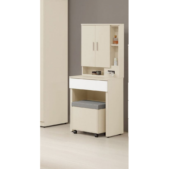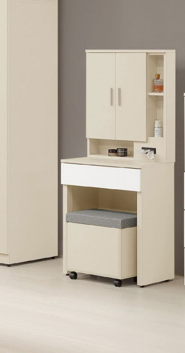 212-2 妮娜奶茶色2尺鏡台 含椅 鏡座高度17公分 開門鏡面無隔板$6200