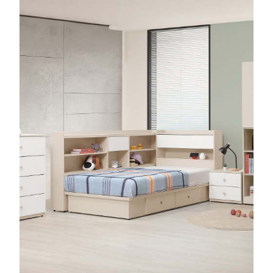 213-4 妮娜奶茶色7尺床邊櫃 下緣高度50公分 可掀開置物$6600