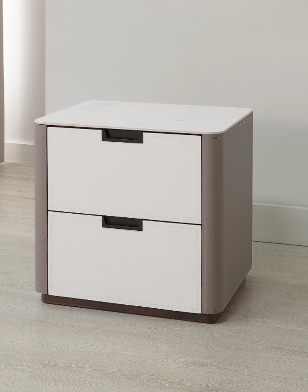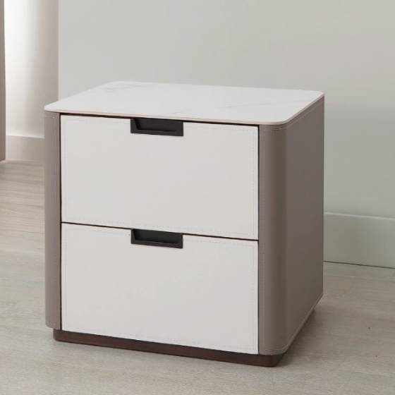 A26-03 洛麗雅馬鞍皮岩板床頭櫃$6800
