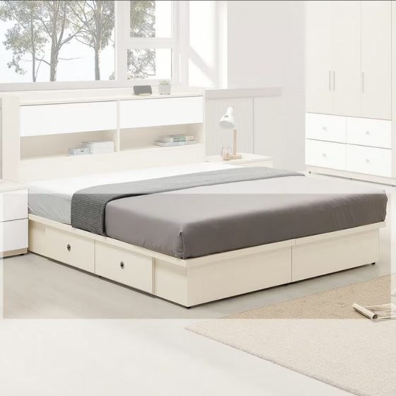 211-4 妮娜奶茶色5尺四抽床底 (三節式滑軌)$10300