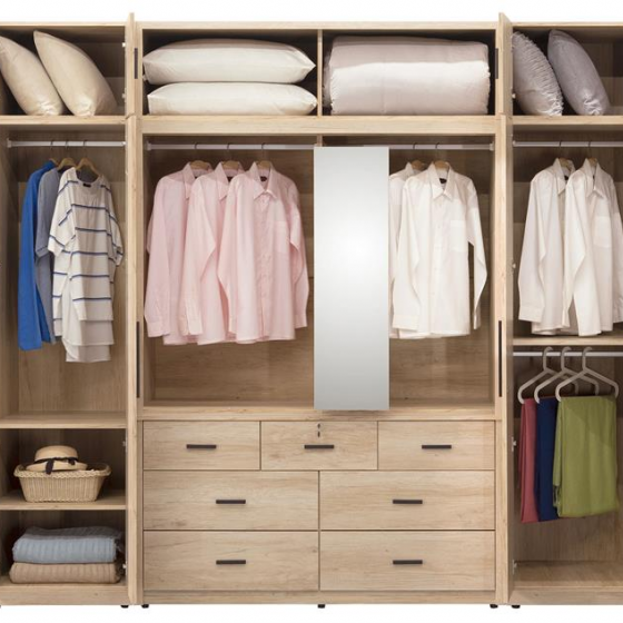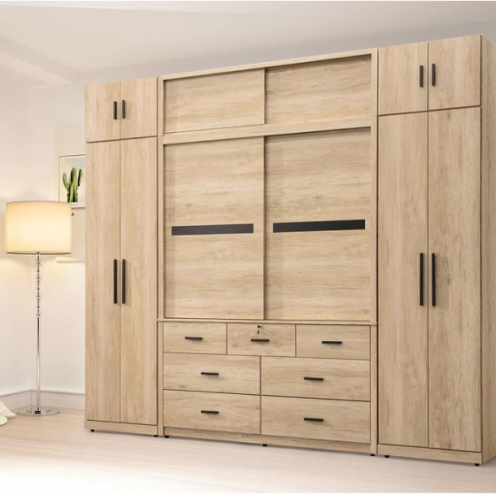 125-2 茉娜9*8尺組合衣櫃(全組)(2*8尺單吊衣櫃+5*8尺推門衣櫃+2*8尺雙吊衣櫃)$36200