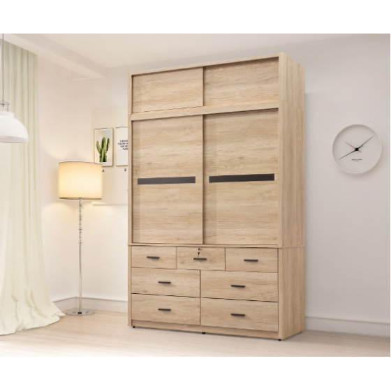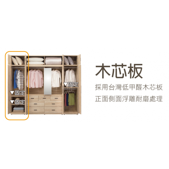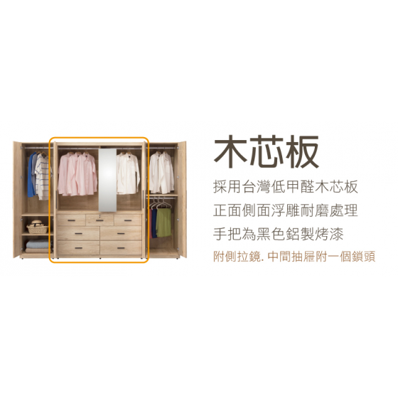 125-3 茉娜2*8尺單吊衣櫃$7200 125-4 茉娜5*8尺推門衣櫃(附側拉鏡.中間抽屜附一個鎖頭)$21600 125-5 茉娜2*8尺雙吊衣櫃$7200