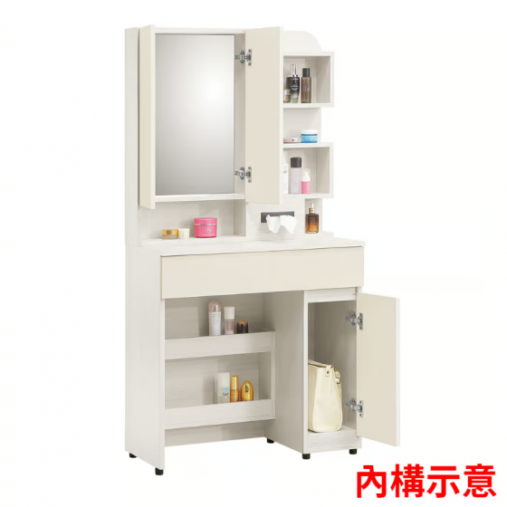 215-3 燕麥2.64尺開門鏡台 含椅 (鏡座高度81cm.附1片活動隔板)$10000