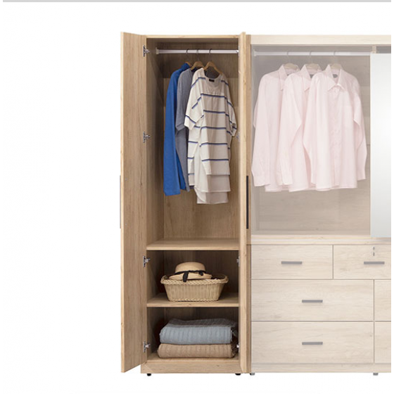 126-3 茉娜2*6.6尺單吊衣櫃$5200 126-4 茉娜5*6.6尺推門衣櫃(附側拉鏡中間抽屜附一個鎖頭)$17000 126-5 茉娜2*6.6尺雙吊衣櫃$5200